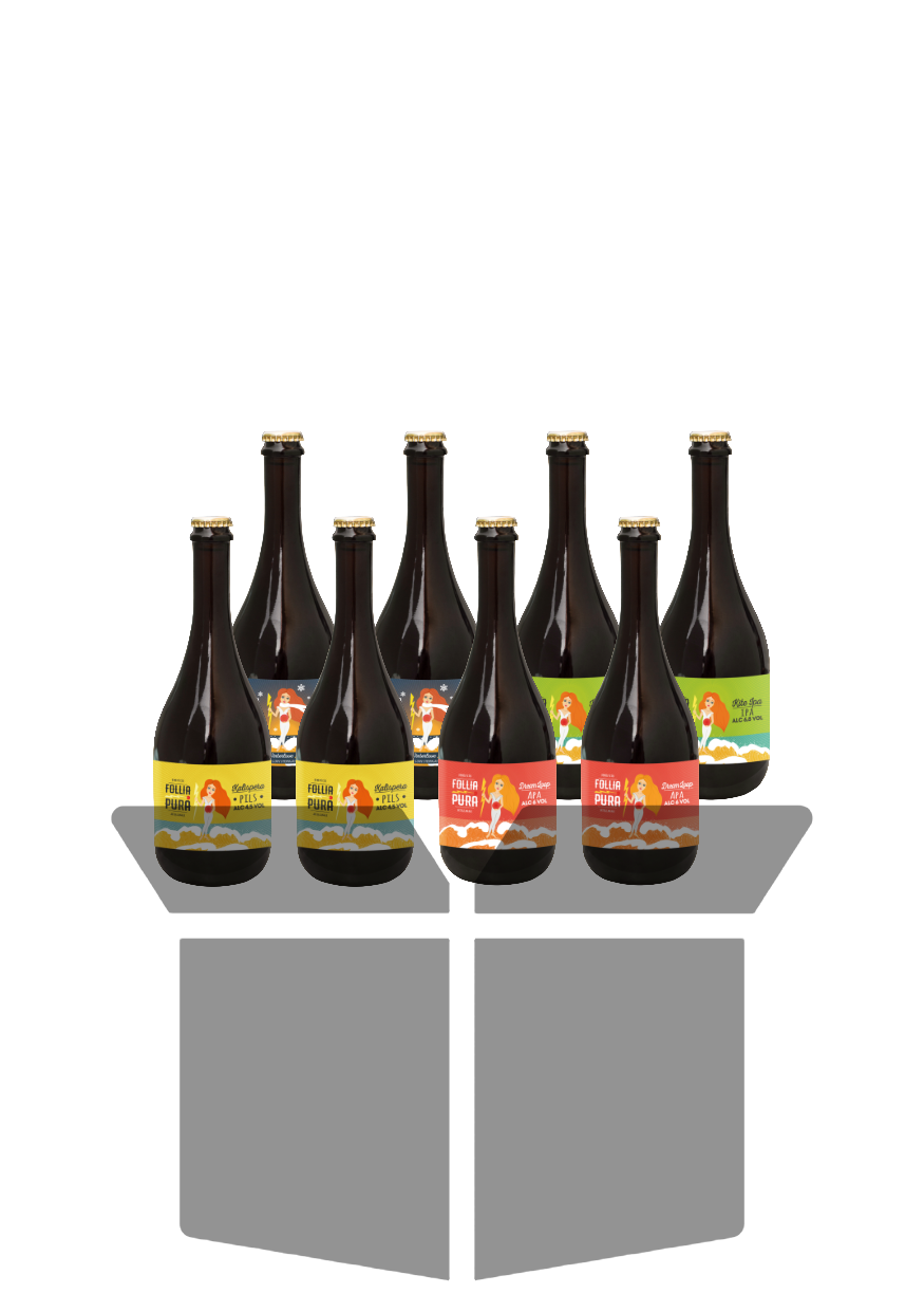 La box comprende quattro stili differenti della linea Follia Pura, ciascuno con profilo aromatico, struttura e caratteristiche distintive. Un assortimento pensato per offrire una panoramica completa delle produzioni artigianali del birrificio.